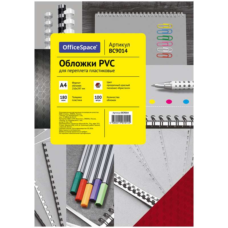 Главная / Товары / КАНЦТОВАРЫ / УПАКОВКА / ХОЗ ТОВАРЫ / РАСХОДНЫЕ МАТЕРИАЛЫ / Офисная техника и расходные материалы / Брощуровщики и расходные материалы для переплета / Обложки для переплета / Обложка А4 OfficeSpace "PVC" 180мкм, "Кристалл" прозрачный красный пластик, 100л.