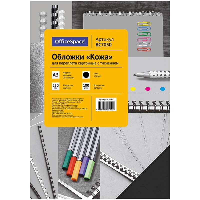 Главная / Товары / КАНЦТОВАРЫ / УПАКОВКА / ХОЗ ТОВАРЫ / РАСХОДНЫЕ МАТЕРИАЛЫ / Офисная техника и расходные материалы / Брощуровщики и расходные материалы для переплета / Обложки для переплета / Обложка А3 OfficeSpace "Кожа" 230г/кв.м, черный картон, 100л.