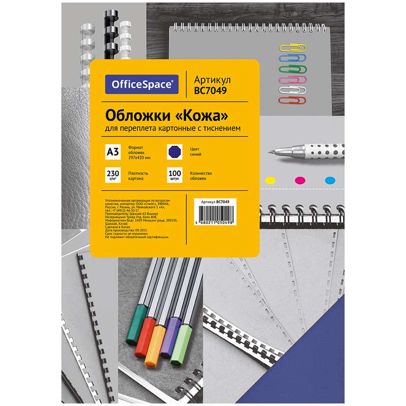 Главная / Товары / КАНЦТОВАРЫ / УПАКОВКА / ХОЗ ТОВАРЫ / РАСХОДНЫЕ МАТЕРИАЛЫ / Офисная техника и расходные материалы / Брощуровщики и расходные материалы для переплета / Обложки для переплета / Обложка А3 OfficeSpace "Кожа" 230г/кв.м, синий картон, 100л.