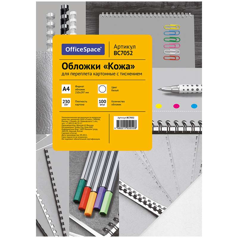 Главная / Товары / КАНЦТОВАРЫ / УПАКОВКА / ХОЗ ТОВАРЫ / РАСХОДНЫЕ МАТЕРИАЛЫ / Офисная техника и расходные материалы / Брощуровщики и расходные материалы для переплета / Обложки для переплета / Обложка А4 OfficeSpace "Кожа" 230г/кв.м, белый картон, 100л.