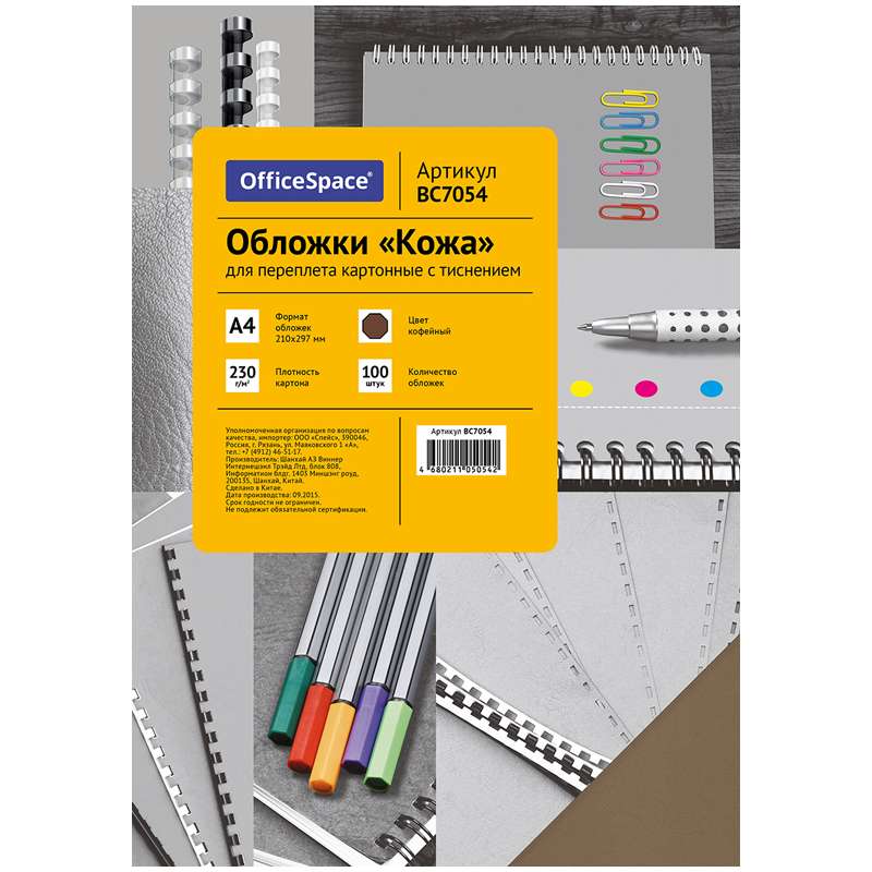Главная / Товары / КАНЦТОВАРЫ / УПАКОВКА / ХОЗ ТОВАРЫ / РАСХОДНЫЕ МАТЕРИАЛЫ / Офисная техника и расходные материалы / Брощуровщики и расходные материалы для переплета / Обложки для переплета / Обложка А4 OfficeSpace "Кожа" 230г/кв.м, кофейный картон, 100л.