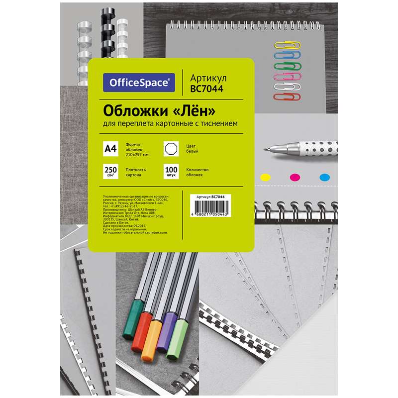 Главная / Товары / КАНЦТОВАРЫ / УПАКОВКА / ХОЗ ТОВАРЫ / РАСХОДНЫЕ МАТЕРИАЛЫ / Офисная техника и расходные материалы / Брощуровщики и расходные материалы для переплета / Обложки для переплета / Обложка А4 OfficeSpace "Лён" 250г/кв.м, белый картон, 100л.