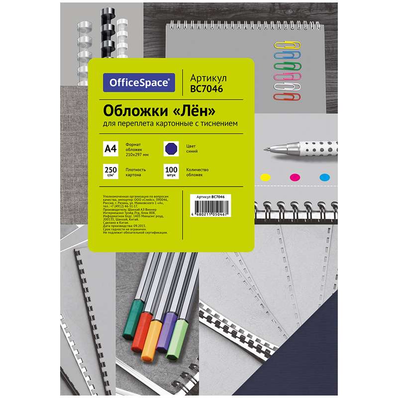 Главная / Товары / КАНЦТОВАРЫ / УПАКОВКА / ХОЗ ТОВАРЫ / РАСХОДНЫЕ МАТЕРИАЛЫ / Офисная техника и расходные материалы / Брощуровщики и расходные материалы для переплета / Обложки для переплета / Обложка А4 OfficeSpace "Лён" 250г/кв.м, синий картон, 100л.