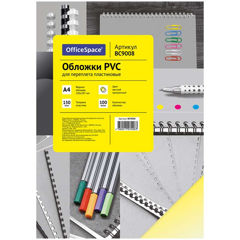 Главная / Товары / КАНЦТОВАРЫ / УПАКОВКА / ХОЗ ТОВАРЫ / РАСХОДНЫЕ МАТЕРИАЛЫ / Офисная техника и расходные материалы / Брощуровщики и расходные материалы для переплета / Обложки для переплета / Обложка А4 OfficeSpace "PVC" 150мкм, прозрачный желтый пластик, 100л.