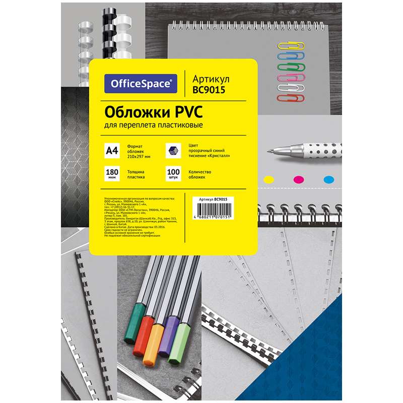 Главная / Товары / КАНЦТОВАРЫ / УПАКОВКА / ХОЗ ТОВАРЫ / РАСХОДНЫЕ МАТЕРИАЛЫ / Офисная техника и расходные материалы / Брощуровщики и расходные материалы для переплета / Обложки для переплета / Обложка А4 OfficeSpace "PVC" 180мкм, "Кристалл" прозрачный синий пластик, 100л.