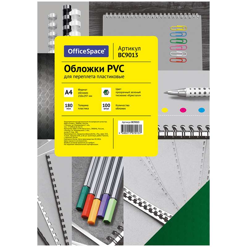 Главная / Товары / КАНЦТОВАРЫ / УПАКОВКА / ХОЗ ТОВАРЫ / РАСХОДНЫЕ МАТЕРИАЛЫ / Офисная техника и расходные материалы / Брощуровщики и расходные материалы для переплета / Обложки для переплета / Обложка А4 OfficeSpace "PVC" 180мкм, "Кристалл" прозрачный зеленый пластик, 100л.