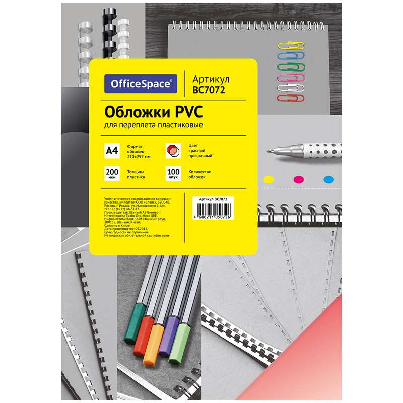 Главная / Товары / КАНЦТОВАРЫ / УПАКОВКА / ХОЗ ТОВАРЫ / РАСХОДНЫЕ МАТЕРИАЛЫ / Офисная техника и расходные материалы / Брощуровщики и расходные материалы для переплета / Обложки для переплета / Обложка А4 OfficeSpace "PVC" 200мкм, прозрачный красный пластик, 100л.