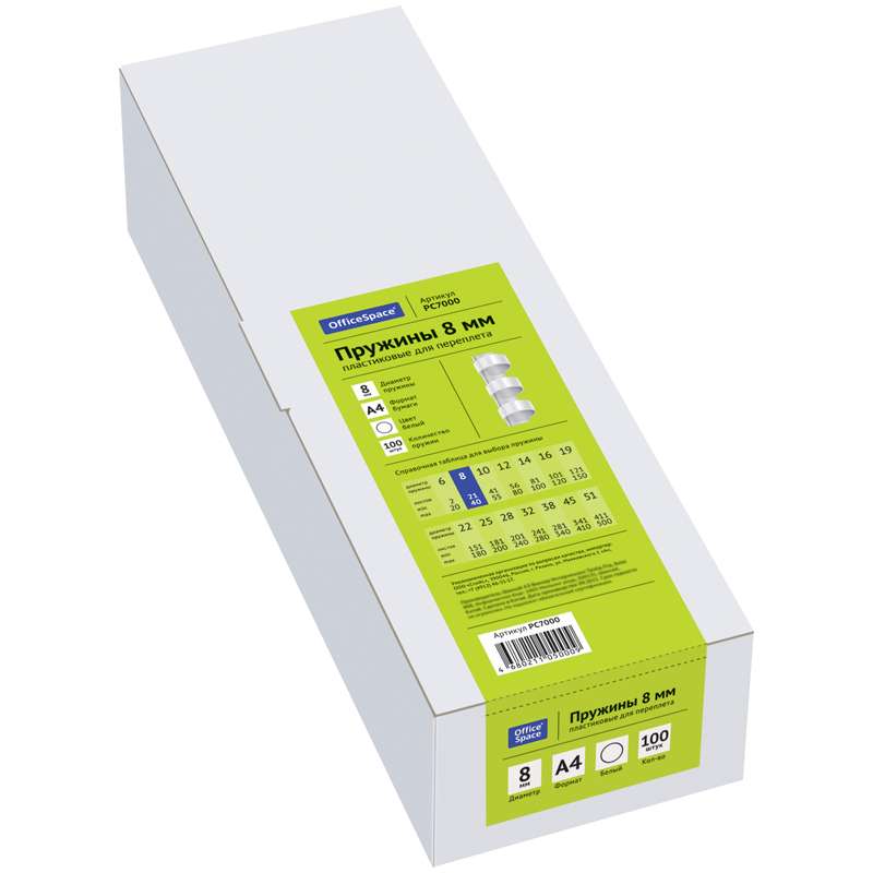 Главная / Товары / КАНЦТОВАРЫ / УПАКОВКА / ХОЗ ТОВАРЫ / РАСХОДНЫЕ МАТЕРИАЛЫ / Офисная техника и расходные материалы / Брощуровщики и расходные материалы для переплета / Пружины для переплета / Пружины пластик D=08мм OfficeSpace, белый, 100шт.