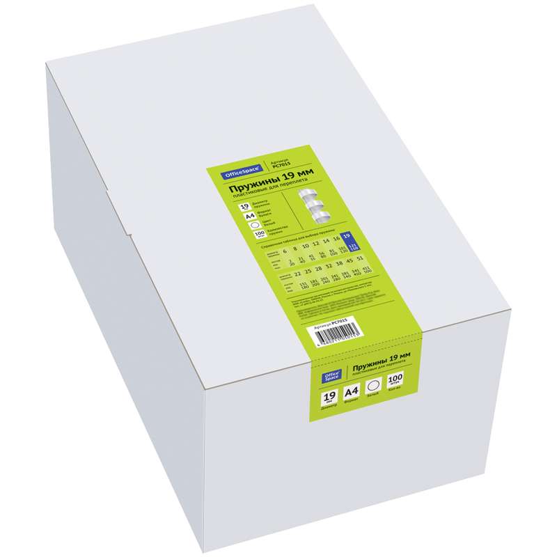 Главная / Товары / КАНЦТОВАРЫ / УПАКОВКА / ХОЗ ТОВАРЫ / РАСХОДНЫЕ МАТЕРИАЛЫ / Офисная техника и расходные материалы / Брощуровщики и расходные материалы для переплета / Пружины для переплета / Пружины пластик D=19мм OfficeSpace, белый, 100шт.