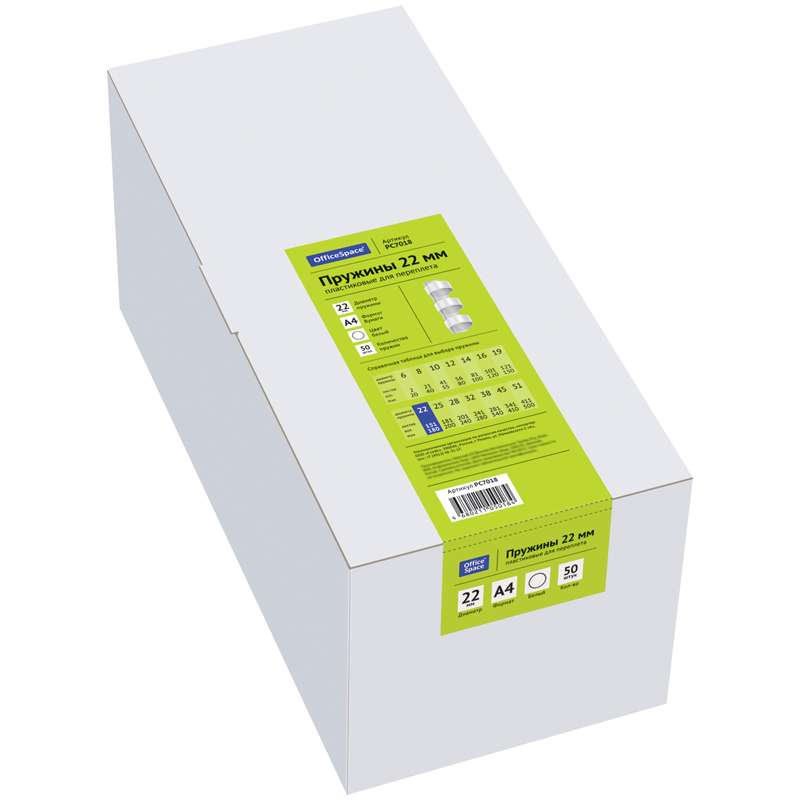 Главная / Товары / КАНЦТОВАРЫ / УПАКОВКА / ХОЗ ТОВАРЫ / РАСХОДНЫЕ МАТЕРИАЛЫ / Офисная техника и расходные материалы / Брощуровщики и расходные материалы для переплета / Пружины для переплета / Пружины пластик D=22мм OfficeSpace, белый, 50шт.