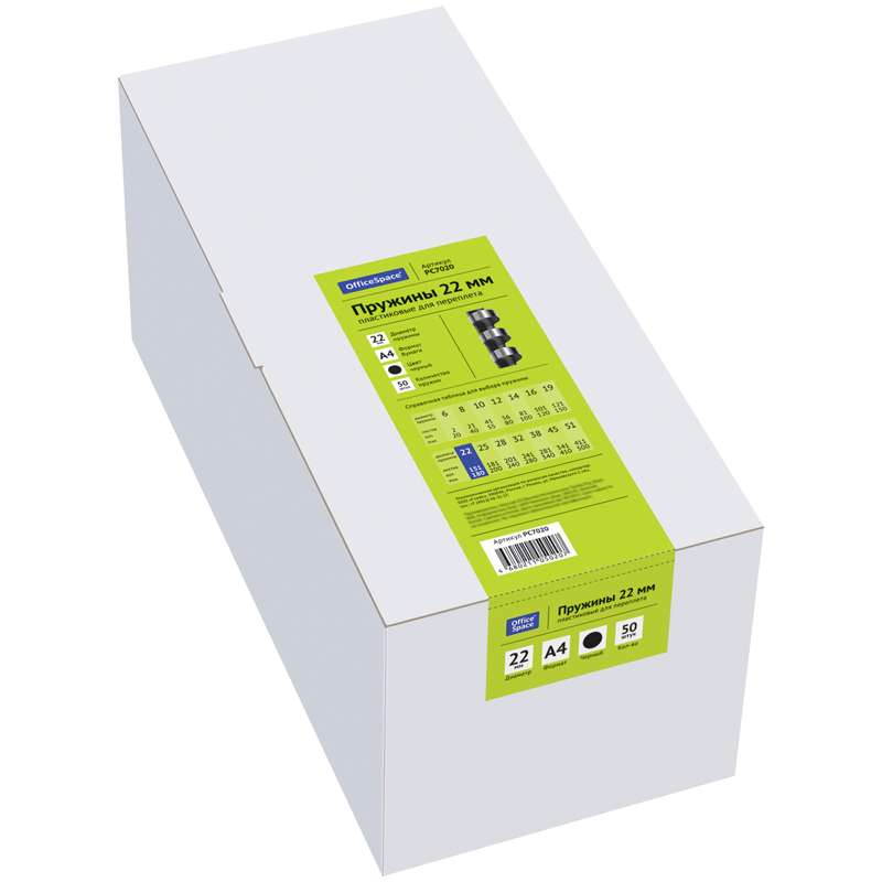 Главная / Товары / КАНЦТОВАРЫ / УПАКОВКА / ХОЗ ТОВАРЫ / РАСХОДНЫЕ МАТЕРИАЛЫ / Офисная техника и расходные материалы / Брощуровщики и расходные материалы для переплета / Пружины для переплета / Пружины пластик D=22мм OfficeSpace, черный, 50шт.