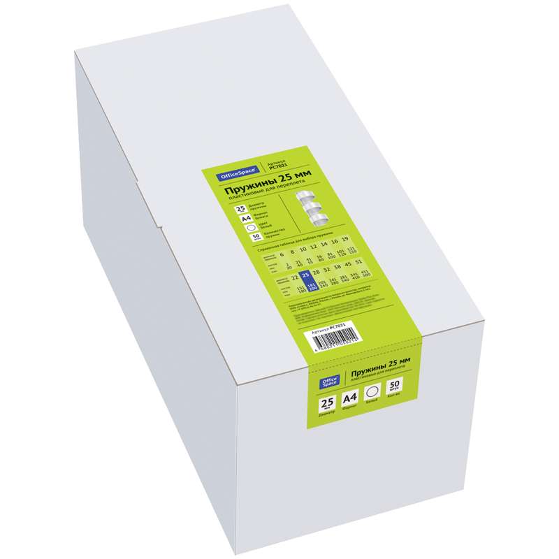 Главная / Товары / КАНЦТОВАРЫ / УПАКОВКА / ХОЗ ТОВАРЫ / РАСХОДНЫЕ МАТЕРИАЛЫ / Офисная техника и расходные материалы / Брощуровщики и расходные материалы для переплета / Пружины для переплета / Пружины пластик D=25мм OfficeSpace, белый, 50шт.