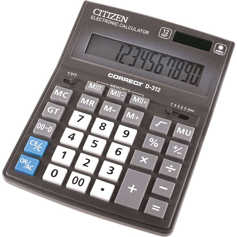 Бухгалтерский настольный калькулятор; 12-ти разрядный, квадратный корень, расчет наценки, вычисление процентов, двойная память, функция итогового суммирования, двойное питание218795 Калькулятор настольный Correct D 12 разрядов, двойное пит., 155*205*28 мм, черный D-312 [РЦ]