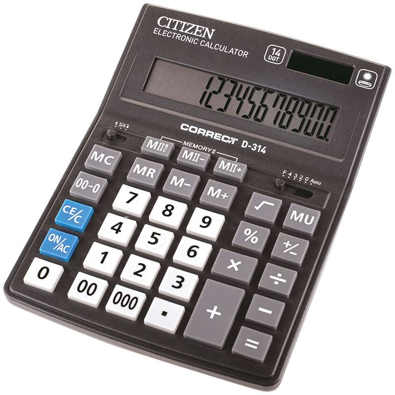Бухгалтерский настольный калькулятор; 14-ти разрядный, расчет наценки, квадратный корень, вычисление процентов, двойная память, двойное питание218796 Калькулятор настольный Correct D 14 разрядов, двойное питание, 155*205*28мм, черн. D-314 [РЦ]