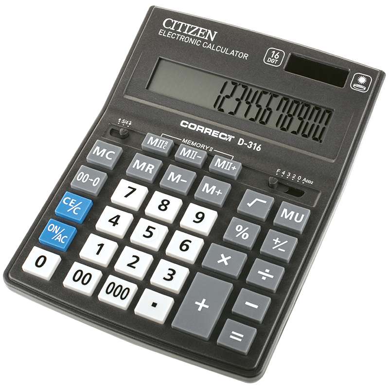 Главная / Товары / КАНЦТОВАРЫ / УПАКОВКА / ХОЗ ТОВАРЫ / РАСХОДНЫЕ МАТЕРИАЛЫ / Офисная техника и расходные материалы / Калькуляторы / Калькуляторы настольные / Калькулятор настольный Citizen Correct D, 16 разр., двойное питание, 155*205*28мм, черный