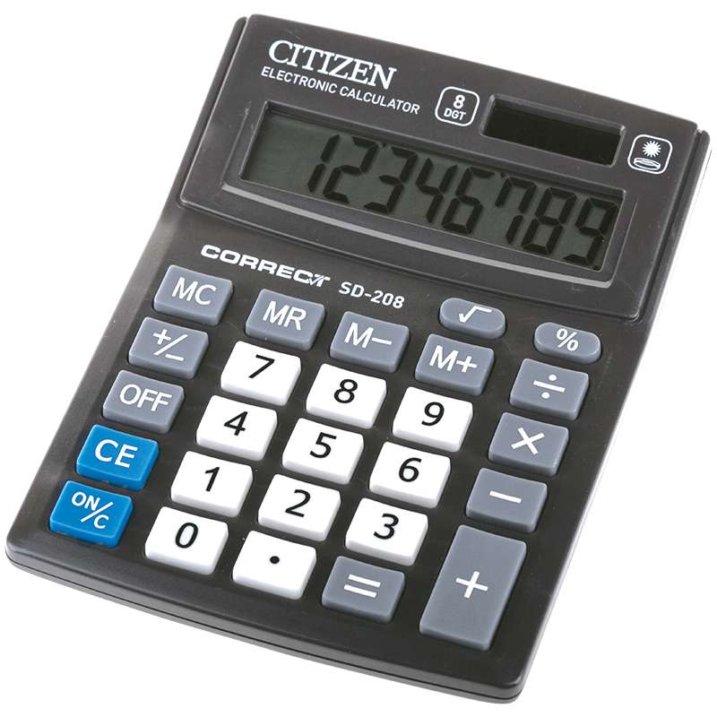 Главная / Товары / КАНЦТОВАРЫ / УПАКОВКА / ХОЗ ТОВАРЫ / РАСХОДНЫЕ МАТЕРИАЛЫ / Офисная техника и расходные материалы / Калькуляторы / Калькуляторы настольные / Калькулятор настольный Citizen Correct SD, 8 разр., двойное питание, 103*138*24мм, черный