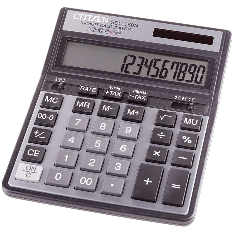 Главная / Товары / КАНЦТОВАРЫ / УПАКОВКА / ХОЗ ТОВАРЫ / РАСХОДНЫЕ МАТЕРИАЛЫ / Офисная техника и расходные материалы / Калькуляторы / Калькуляторы настольные / Калькулятор настольный Citizen SDC-760N, 16 разр., двойное питание, 158*204*31мм, черный