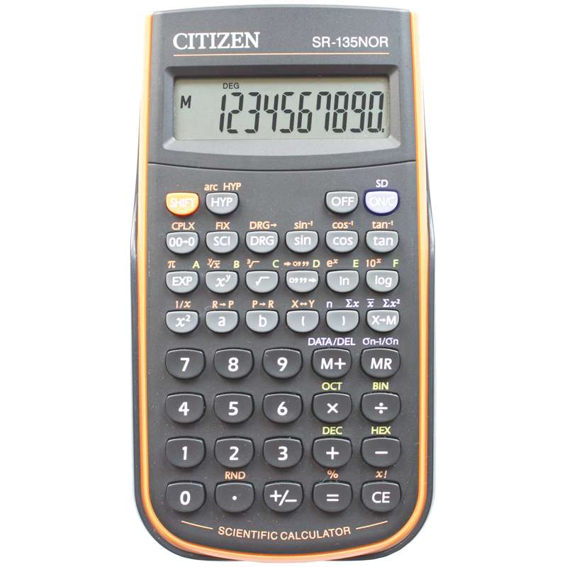 Калькулятор сертифицирован к использованию на ЕГЭ в системе «Учсерт» Российской Академии Образования. Допускается на ЕГЭ по физике, химии, географии. Выполняет арифметические действия, 128 математических функций, статистические расчеты, операции с двоичными, восьмеричными, десятичными и шестнадцатеричными числами. Имеет защиту памяти при отключении питания. От случайного нажатия клавиатуру защищает подвижная пластиковая крышка. Размеры 78*153*12мм. Вес 118г. Картонная упаковка.Калькулятор научный SR-135NOR 10 разрядов, 128 функций, питание от батарейки, 78*153*12 мм, оранжевы