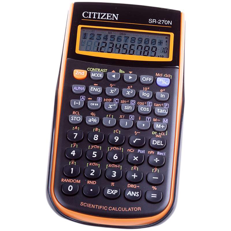 Научный калькулятор непрограммируемый SR, 10+2 разрядов, 2 строчный дисплей, 236 функций, черный/оранжевый корпус, картонная упаковка, Сертифицирован для ЕГЭКалькулятор научный SR-270NOR 10+2 разрядов, 236 функций, питание от батарейки, 78*153*12 мм, оранже