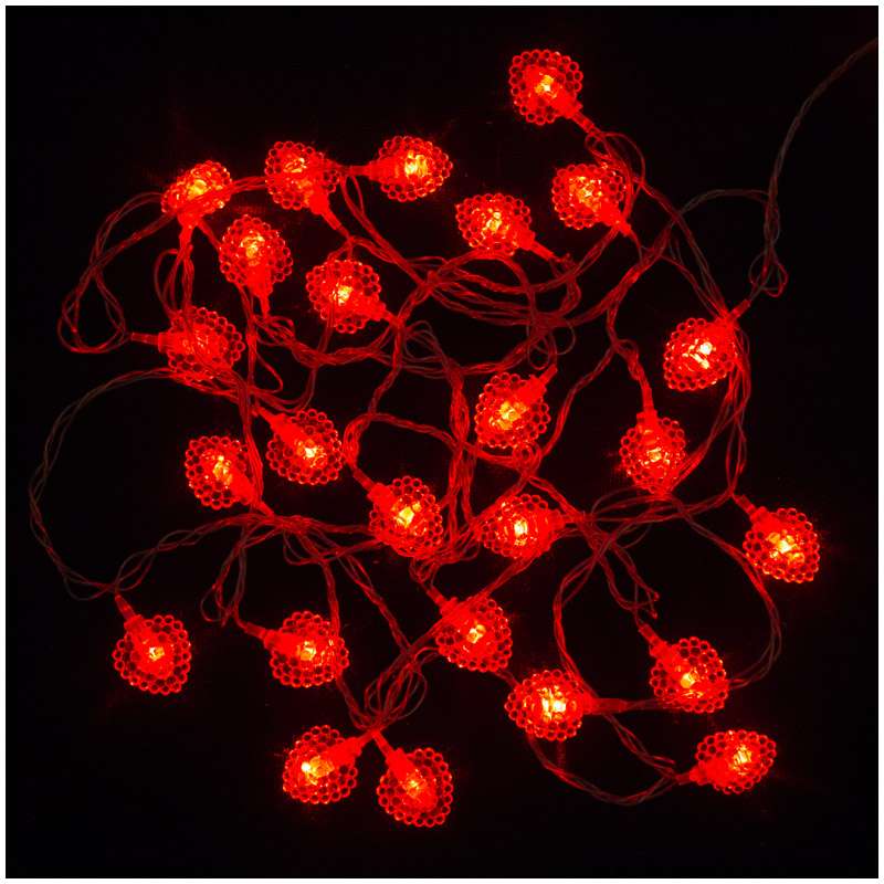 Заключительный штрих на любую ель - это электрическая гирлянда. 8 разных режимов помогут выбрать наилучший вариант освещения. Форма фонарика придаст правильное настроение интерьру !Электрогирлянда светодиодная Яркий праздник "Сердце", 30 ламп, красный, 1 режим, 4,5м