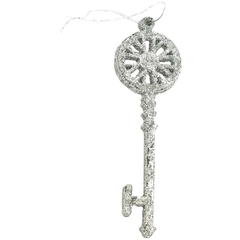 Украшение с глиттером станет ярким дополнением к любому интерьеру. Блеск переливается и искрит. Такую игрушку можно доверить даше малышу, она прочная и много лет будет радовать Вас.Елочное украшение пластиковое "Ключи" 12см, глиттер, серебро