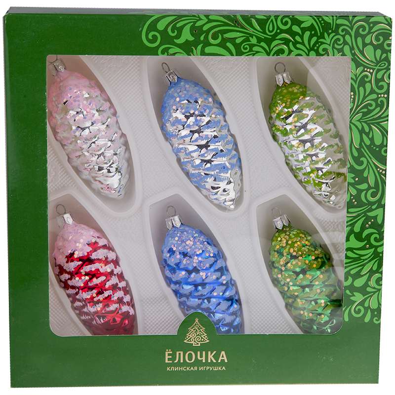 Набор стеклянных елочных украшений "Кедровый" 6 фигурок 8см