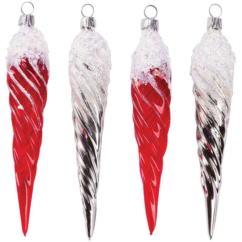 Набор стеклянных елочных украшений ручной работы. В ассортименте два цветовых варианта: красный/белый и фиолетовый/белыйНабор стеклянных елочных украшений "Рифленый" 4 фигурки, 10,5см