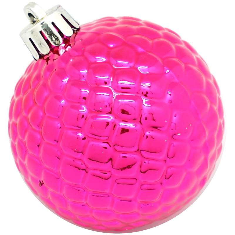 Набор пластиковых шаров. В наборе 6 рельефных шаров. Такие шары долговечны и практичны. Качество шаров позволяет легко заменить ими стеклянные украшения для ели.Набор пластиковых шаров 6шт., 60мм, рельефный, розовый
