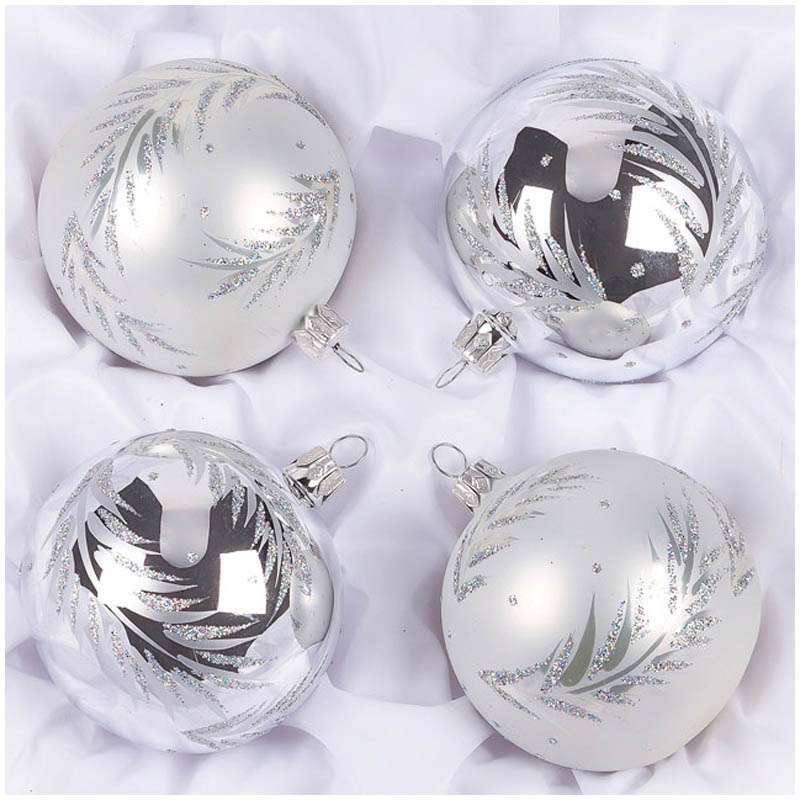 Набор стеклянных шаров "Зимняя ветка" 4шт, 75мм