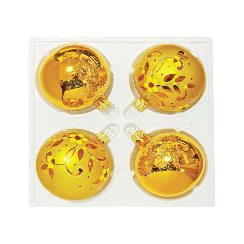 Набор шаров из стекла. В подарочной упаковке. Украшения декорированы росписью, переливающейся крошкой (в зависимости от вида).Набор стеклянных шаров "Злата" 4шт, 75мм