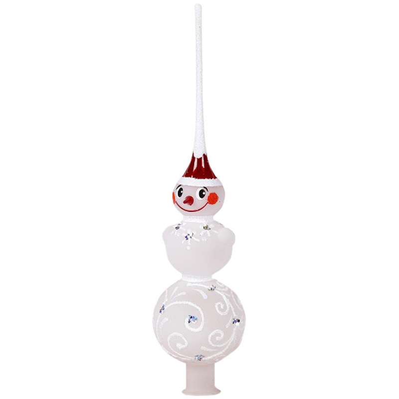 Макушка для елки из стекла декорирована росписью, переливающейся крошкой (в зависимости от вида). В подарочной упаковке.Верхушка стеклянная "Снеговик" 28см