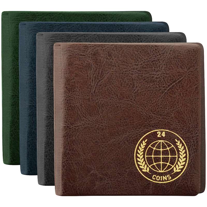 Альбом для монет, 6 листов на 24 монеты, 105*105, ПВХ, карманный. Ориентация альбома: горизонтальный. Наполнение: 6 листов по 4 ячейки. Описание крышки: Вспененный ПВХ 600 мкм. Клише с количеством монет.Альбом для монет 105*105 на 24 монеты, 6 листов, карманный, ПВХ
