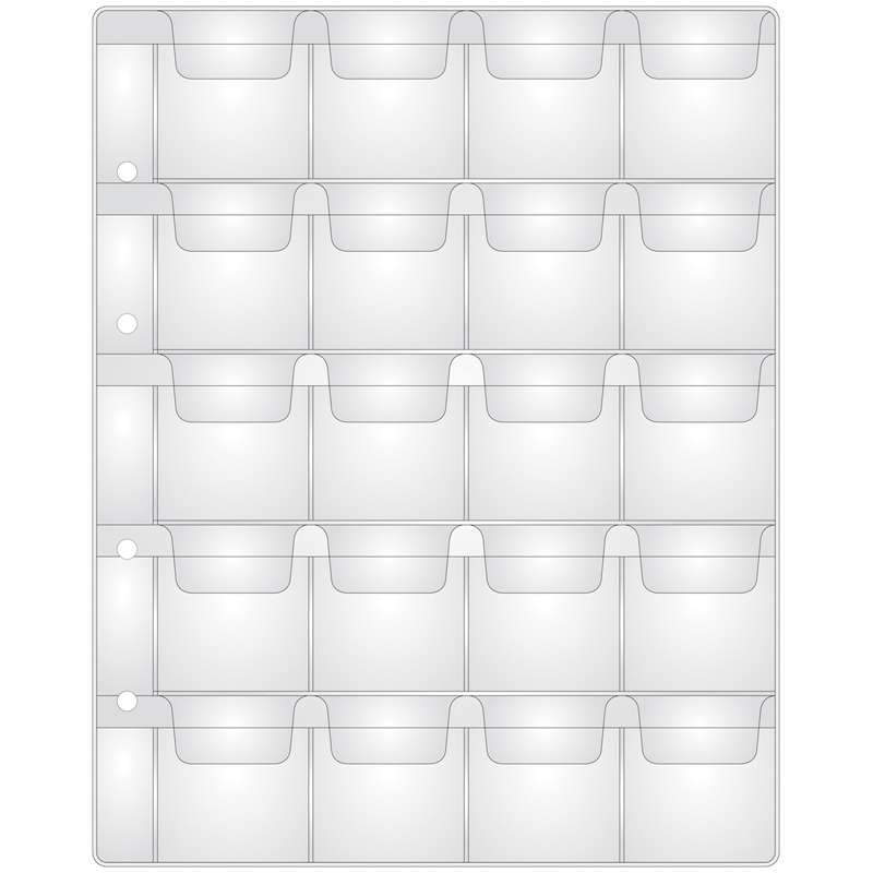 Лист для альбома «Optima» Количество ячеек: 20 Размер ячейки: 42*45 Ориентация листа: вертикальная Описание: для хранения монет СССР номиналом 1 рубль и 3 рубля, крупных номиналов монет регулярного чекана экзотических стран.Лист для альбома "Optima" на 20 монет 42*45, 120 мкм
