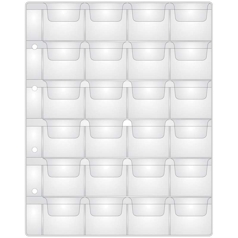 Лист для альбома «Optima» Количество ячеек: 24 Размер ячейки: 44*40 Ориентация листа: вертикальнаяЛист для альбома "Optima" на 24 монеты 44*40, 150 мкм