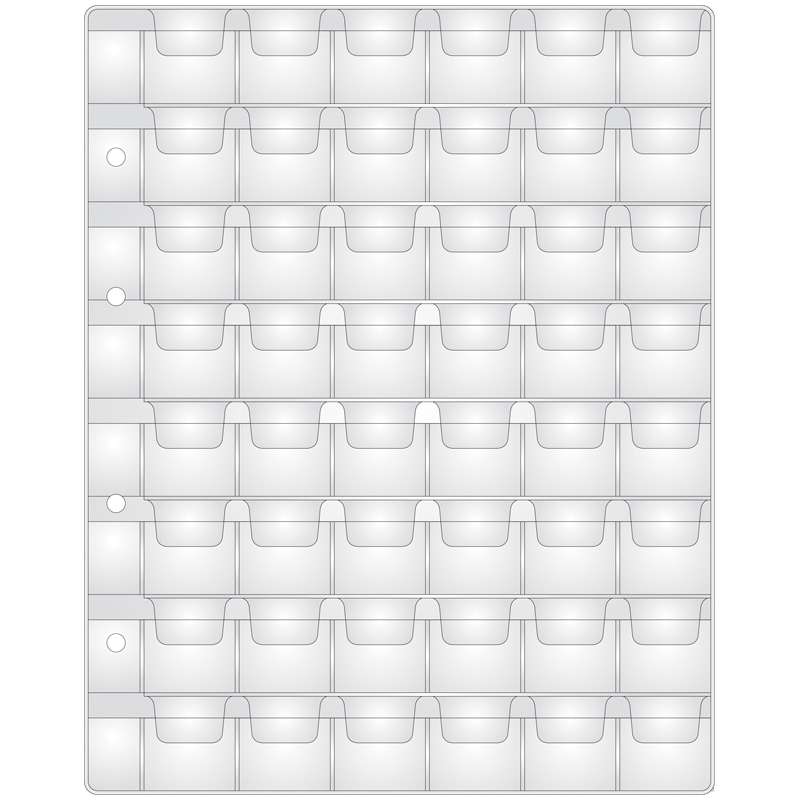 Лист для альбома «Optima» Количество ячеек: 48 Размер ячейки: 28*28 Ориентация листа: вертикальная Описание: для 3-х и 20-ти копеечных монет СССР , 10-ти рублевых памятных монет России серии «Города Воинской Славы», а также многих номиналов монет Европы регулярного чекана второй половины 20-го века.Лист для альбома "Optima" на 48 монет 28*28, 120 мкм