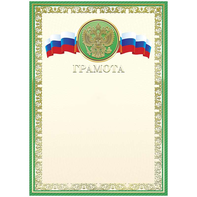 Бланк "Грамота" изготовлен из импортного целлюлозного мелованного картона плотностью 190 г/м2. Отделка бланка выполнена конгревным тиснением с фольгой. Формат - А4. Наградные грамоты и благодарности используются для выражения признательности сотрудникам, коллегам и партнерам. Бланк подходит для цветной печати.Грамота А4, мелованный картон, конгрев, тиснение фольгой