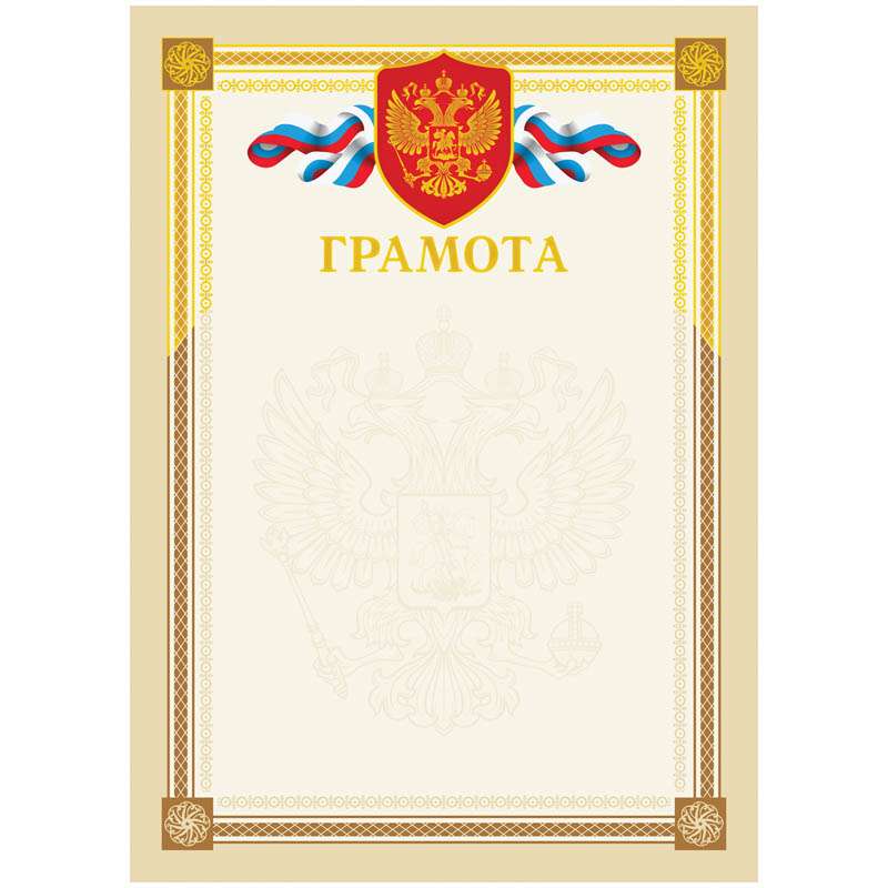 Бланк "Грамота" изготовлен из импортного целлюлозного мелованного картона плотностью 190 г/м2 и украшен декоративными элементами из золотой фольги. Формат - А4. Наградные грамоты и благодарности используются для выражения признательности сотрудникам, коллегам и партнерам. Бланк подходит для цветной печати.Грамота А4, мелованный картон, тиснение фольгой