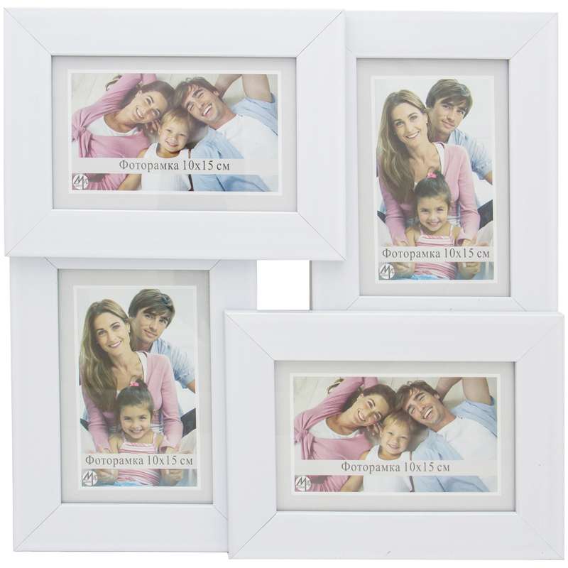 Главная / Товары / КАНЦТОВАРЫ / УПАКОВКА / ХОЗ ТОВАРЫ / РАСХОДНЫЕ МАТЕРИАЛЫ / Праздничная и поздравительная продукция / Подарки, сувениры, награды / Рамки для фотографий и дипломов / Мультирамка пластиковая на 4 фото МирРамок, 10*15см, №404, белый