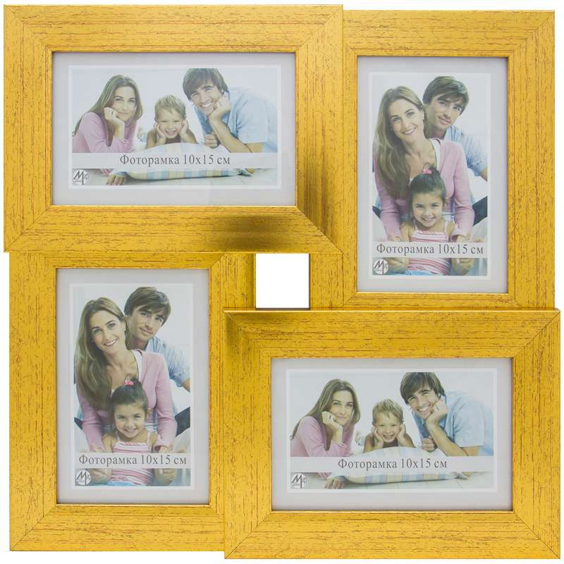 Рамка поможет на долгое время сохранить памятный диплом, грамоту или фотографию. Рамка из пластика выглядит стильно и демократично, что позволит ей вписаться в любой интерьер.Мультирамка пластиковая на 4 фото 10*15см, №404, золото