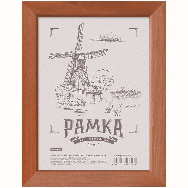 Главная / Товары / КАНЦТОВАРЫ / УПАКОВКА / ХОЗ ТОВАРЫ / РАСХОДНЫЕ МАТЕРИАЛЫ / Праздничная и поздравительная продукция / Подарки, сувениры, награды / Рамки для фотографий и дипломов / Рамка деревянная 15*21см, OfficeSpace, №3, мокко, 22мм