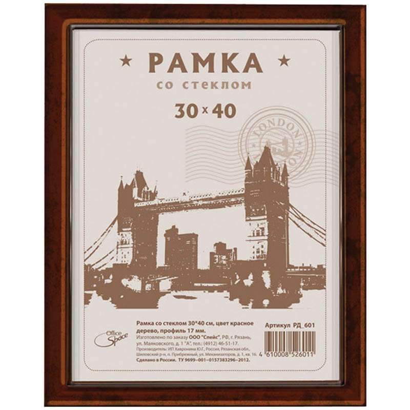 Главная / Товары / КАНЦТОВАРЫ / УПАКОВКА / ХОЗ ТОВАРЫ / РАСХОДНЫЕ МАТЕРИАЛЫ / Праздничная и поздравительная продукция / Подарки, сувениры, награды / Рамки для фотографий и дипломов / Рамка деревянная 30*40см, OfficeSpace, №1, красное дерево, 17мм