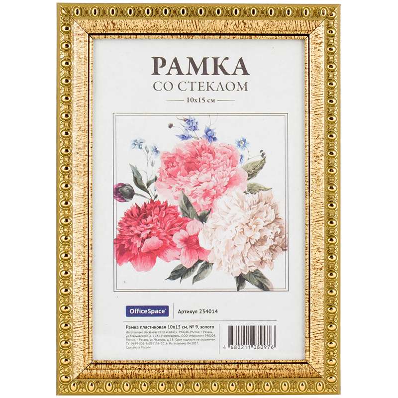 Главная / Товары / КАНЦТОВАРЫ / УПАКОВКА / ХОЗ ТОВАРЫ / РАСХОДНЫЕ МАТЕРИАЛЫ / Праздничная и поздравительная продукция / Подарки, сувениры, награды / Рамки для фотографий и дипломов / Рамка пластиковая 10*15см, OfficeSpace, № 9, золото