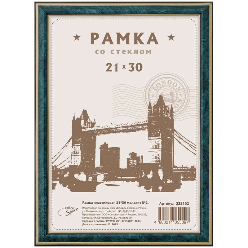 Главная / Товары / КАНЦТОВАРЫ / УПАКОВКА / ХОЗ ТОВАРЫ / РАСХОДНЫЕ МАТЕРИАЛЫ / Праздничная и поздравительная продукция / Подарки, сувениры, награды / Рамки для фотографий и дипломов / Рамка пластиковая 21*30см, OfficeSpace, №2, малахит