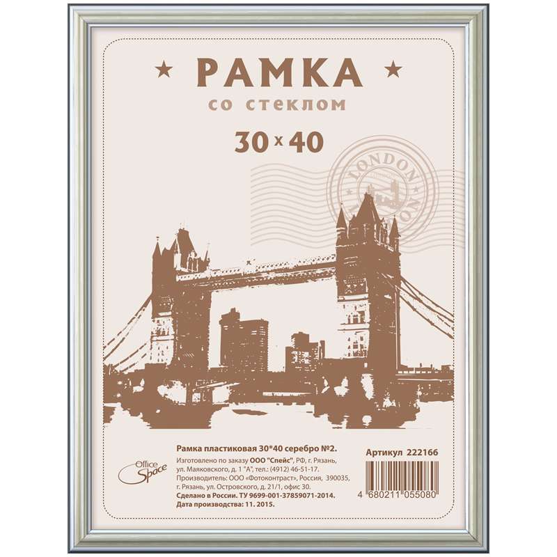 Главная / Товары / КАНЦТОВАРЫ / УПАКОВКА / ХОЗ ТОВАРЫ / РАСХОДНЫЕ МАТЕРИАЛЫ / Праздничная и поздравительная продукция / Подарки, сувениры, награды / Рамки для фотографий и дипломов / Рамка пластиковая 30*40см, OfficeSpace, №2, серебро