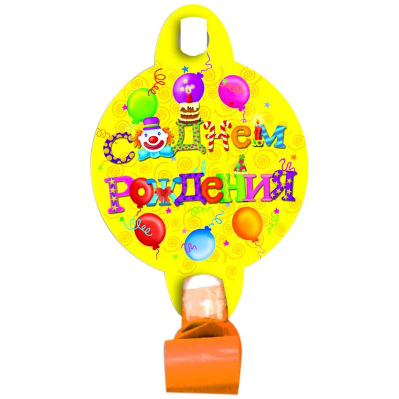 Набор язычков-гудков с карточкой "С Днем Рождения" 6 шт.